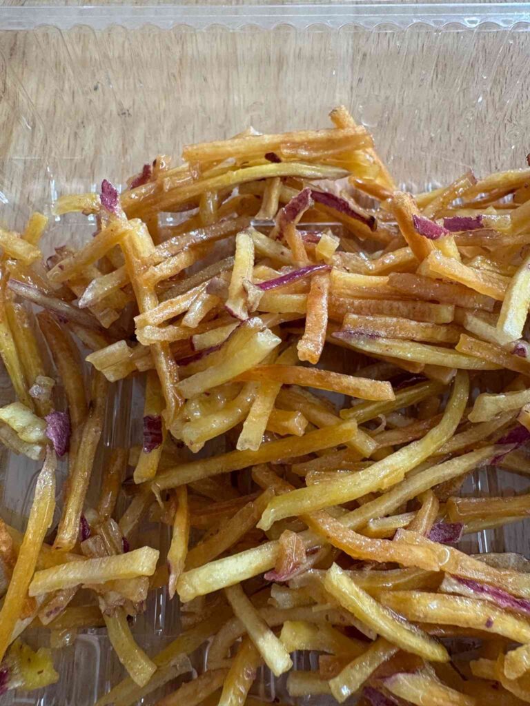 通常のいもけんぴよりも細く仕上げられているため、サクサク食感が楽しめるんです。鳴門金時の自然な甘さが引き立つ、シンプルながらも奥深い味わいですよ。