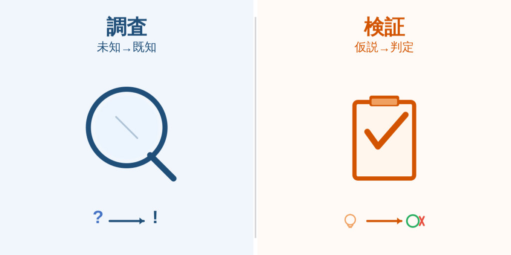 | 比較項目 | 調査 | 検証 |
