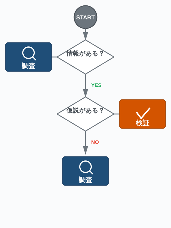 | スタート地点 | 情報がない状態 | 仮説や対象がある状態 |
