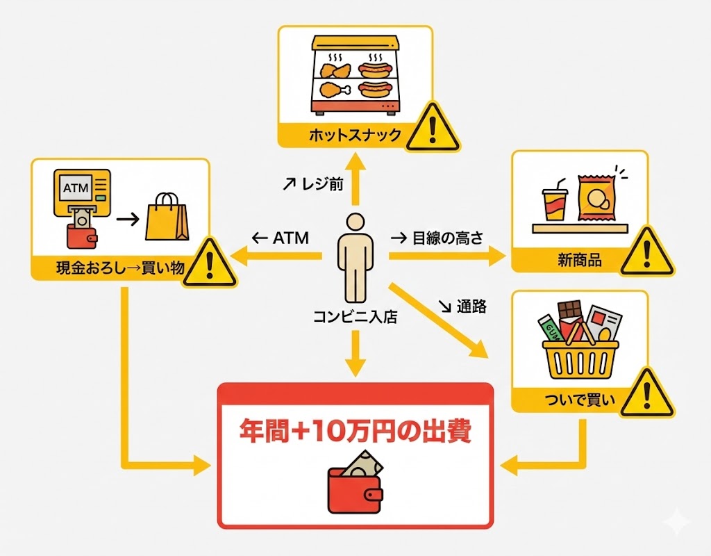 「ちょっとコンビニに寄るだけ」のつもりが、気づけば500円、1,000円と使ってしまう…そんな経験ありませんか?