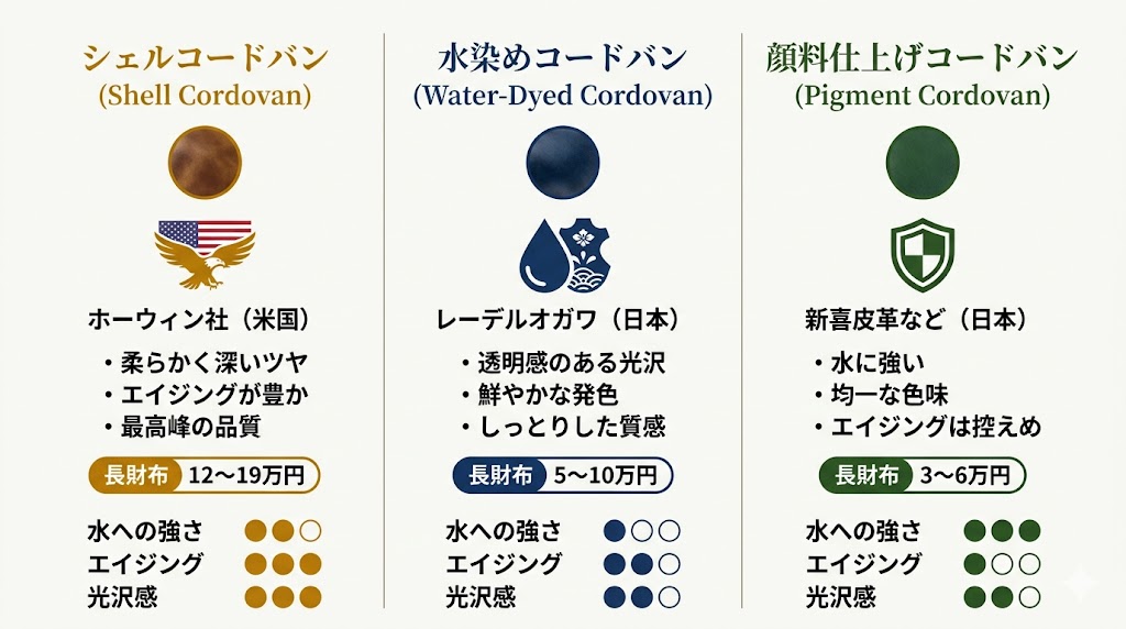 コードバン財布を選ぶうえで、まずここを理解しておくと迷いがぐっと減ります。