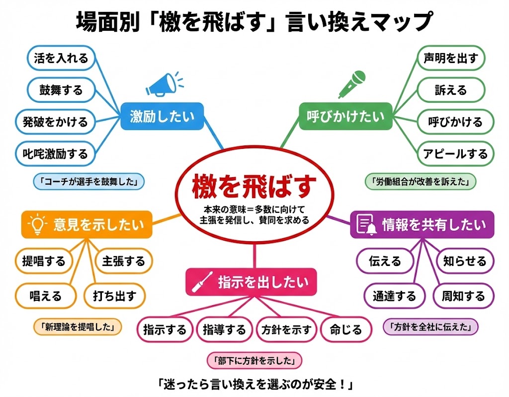「檄を飛ばす」の代わりに使える表現を、場面ごとに整理してみました。