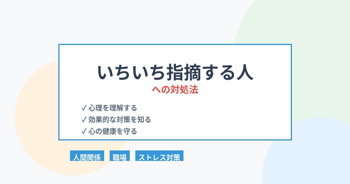 今回は、いちいち指摘してくる人の心理的背景と、実践的な対策方法をご紹介します。