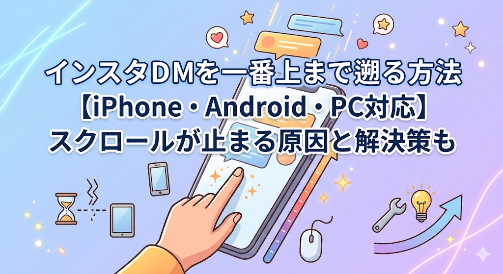 この記事では、インスタDMを一番上まで効率よく遡る方法を、iPhone・Android・PCそれぞれについて解説します。さらに、途中でスクロールが止まってしまうトラブルの原因と解決策まで丁寧にまとめました。