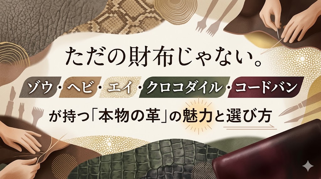 そう思っている方、ちょっと待ってください。実は革の世界には、ゾウ、ヘビ、エイ、クロコダイル、そしてコードバン(馬革)という、まったく異なる個性を持った素材が存在するんですね。それぞれに固有の歴史があり、触り心地があり、そして「その革を選ぶ人の美学」があります。