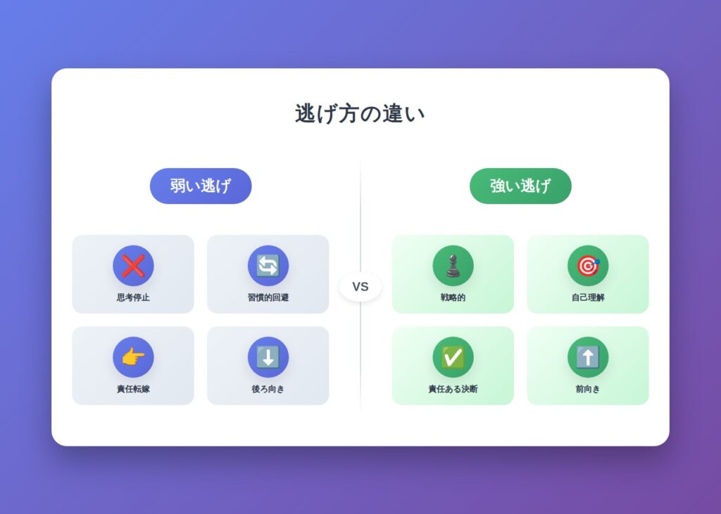 短期的には「逃げた」と見えることでも、長期的に見れば最善の選択であることがあります。