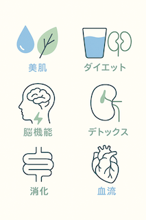 水分不足になると、肌の乾燥やシワの原因となるため、1日2Lの水分摂取は自然な美容法として注目されています。