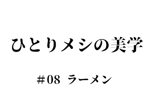 ひとりメシの美学 #08 ラーメン
