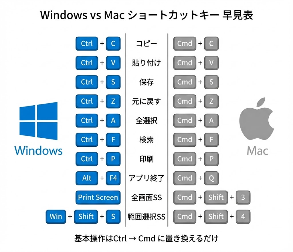 Mac・Windowsの対応表付き比較
