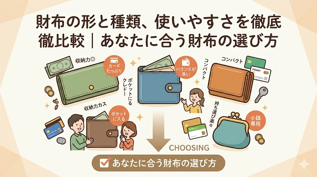 この記事では、財布の形ごとの特徴と使いやすさを、実際の会計シーンに沿って掘り下げます。スペック比較だけでなく、「どんな人が後悔しやすいか」まで踏み込んで解説します。