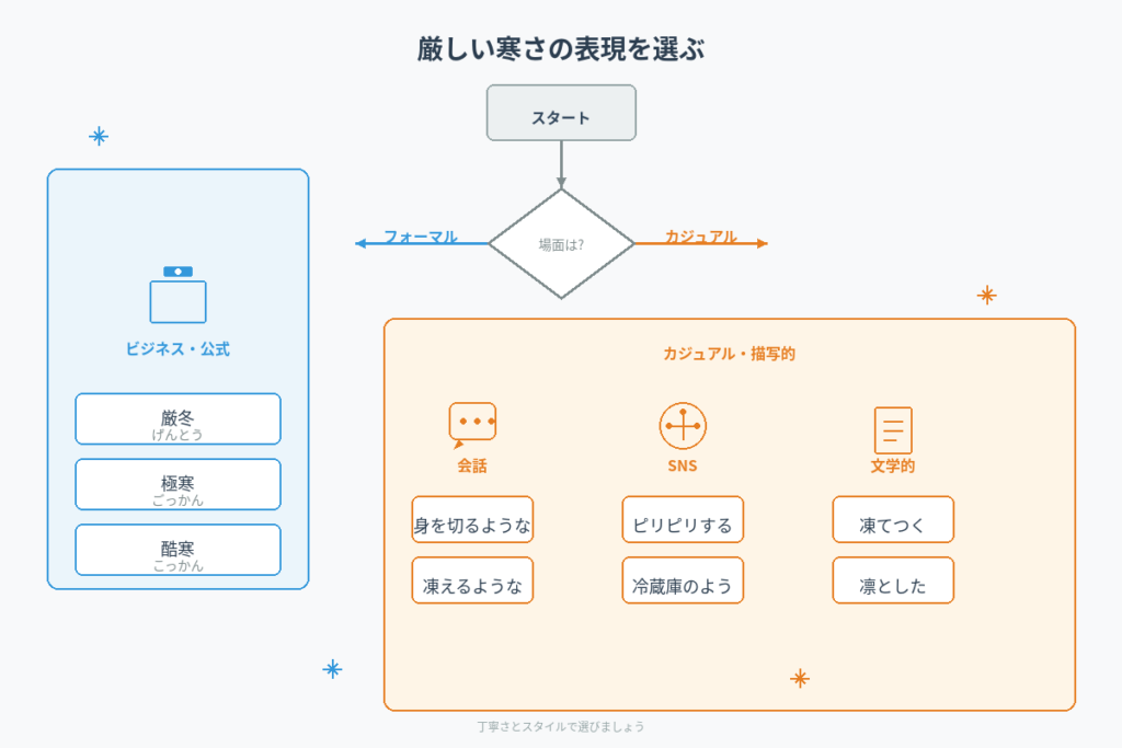 「厳しい寒さ」の言い換え表現30選!シーン別の使い分けとニュアンスの違いを徹底解説