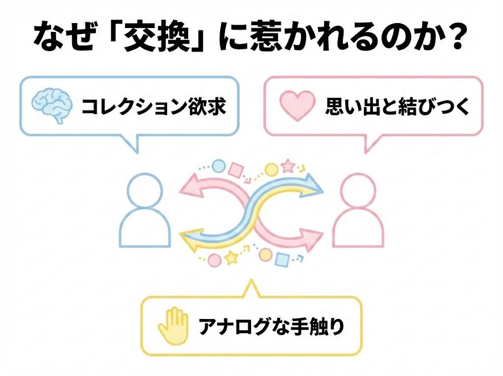 では、なぜシール交換はこれほどまでに人々を惹きつけるのでしょうか。心理学的な視点から紐解いていきます。