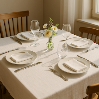 テーブルクロスが食器の音を吸収し、落ち着いた食事の時間を作り出します。
