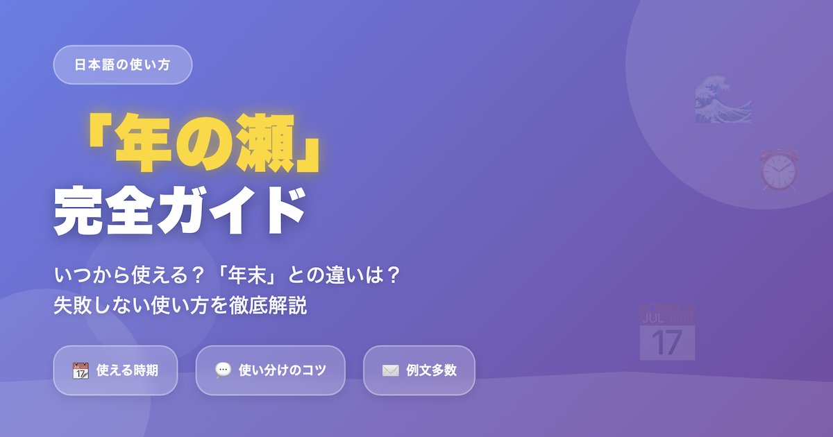 読み終わる頃には、自信を持って「年の瀬」を使いこなせるようになっているはずですよ。
