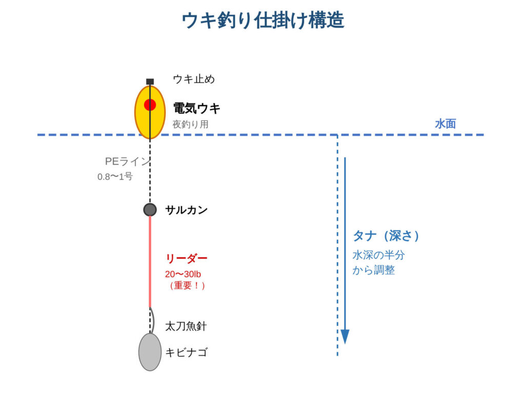 太刀魚は動くものに反応しやすいため、この釣り方も非常に有効です。